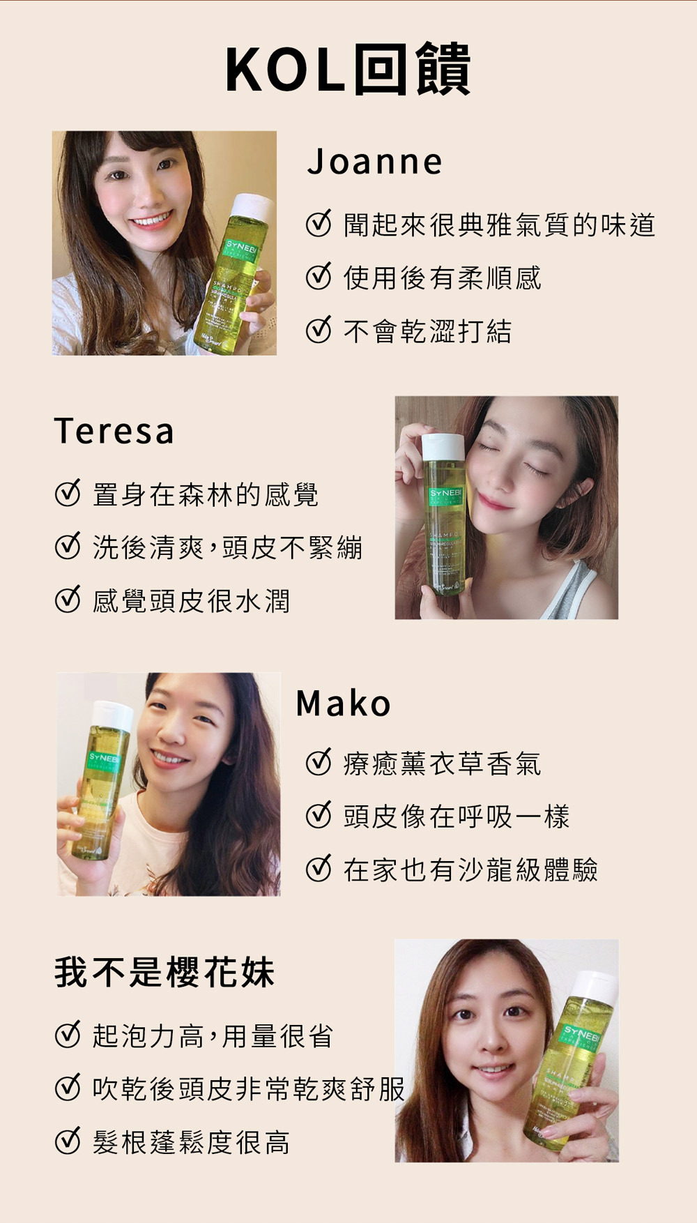 有機薰衣草和百里香萃取,有收斂與調理作用。不含硫酸鹽類界面活性劑